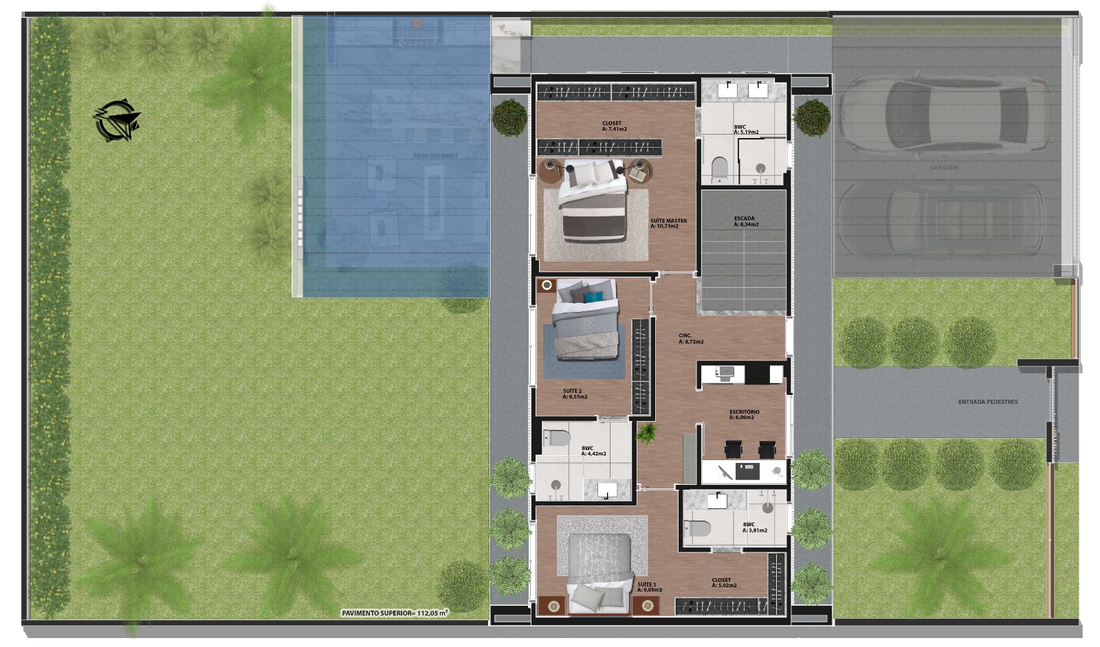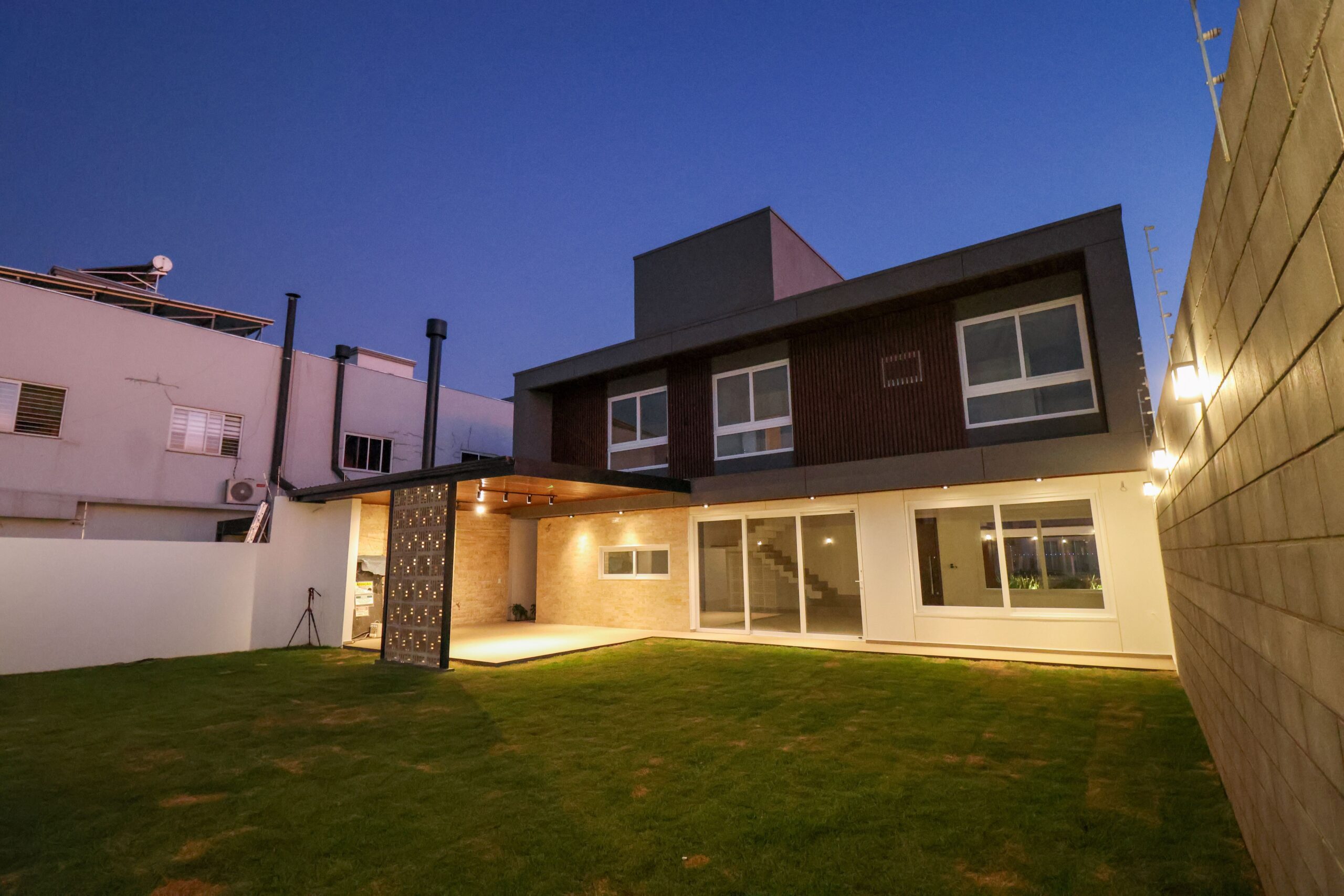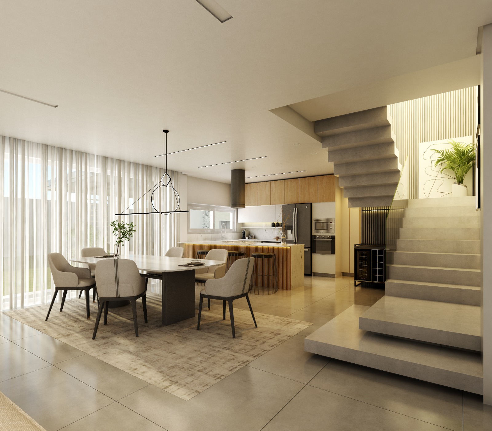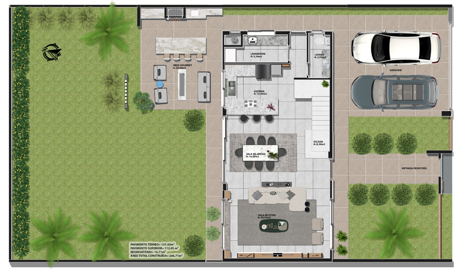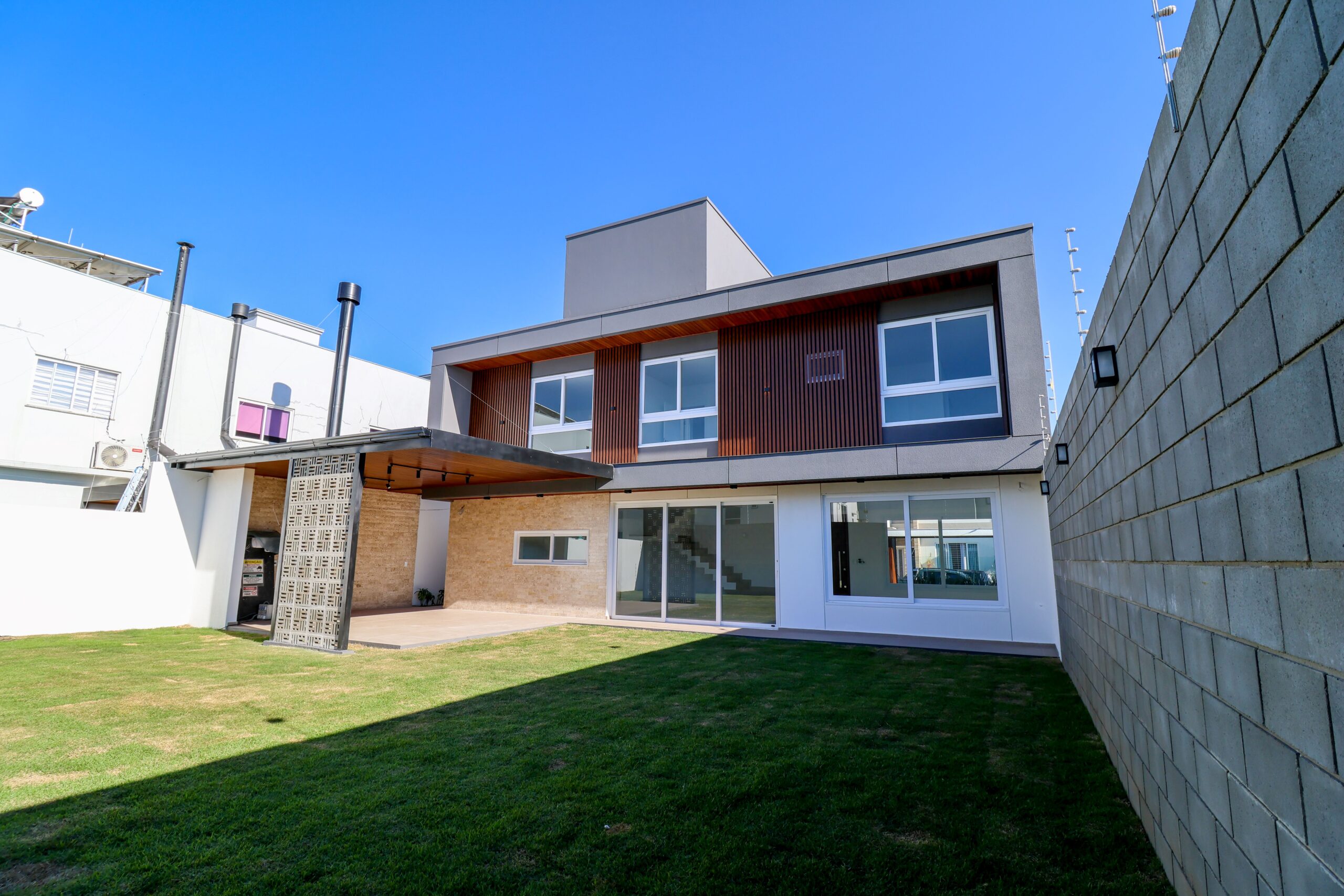 Linda casa, em terreno de 386,25 m², com 266,71 m² construídos. No térreo, sala e cozinha integrados, lavanderia fechada e lavabo. O andar superior conta com uma suíte master, duas suítes grandes e um escritório. Inclui uma área gourmet externa com churrasqueira e ilha, com espaço para um estar externo. Sistema de segurança projetado para um alto nível de controle de segurança. Toda a infraestrutura de piscina e automação foram projetados e estão instalados.